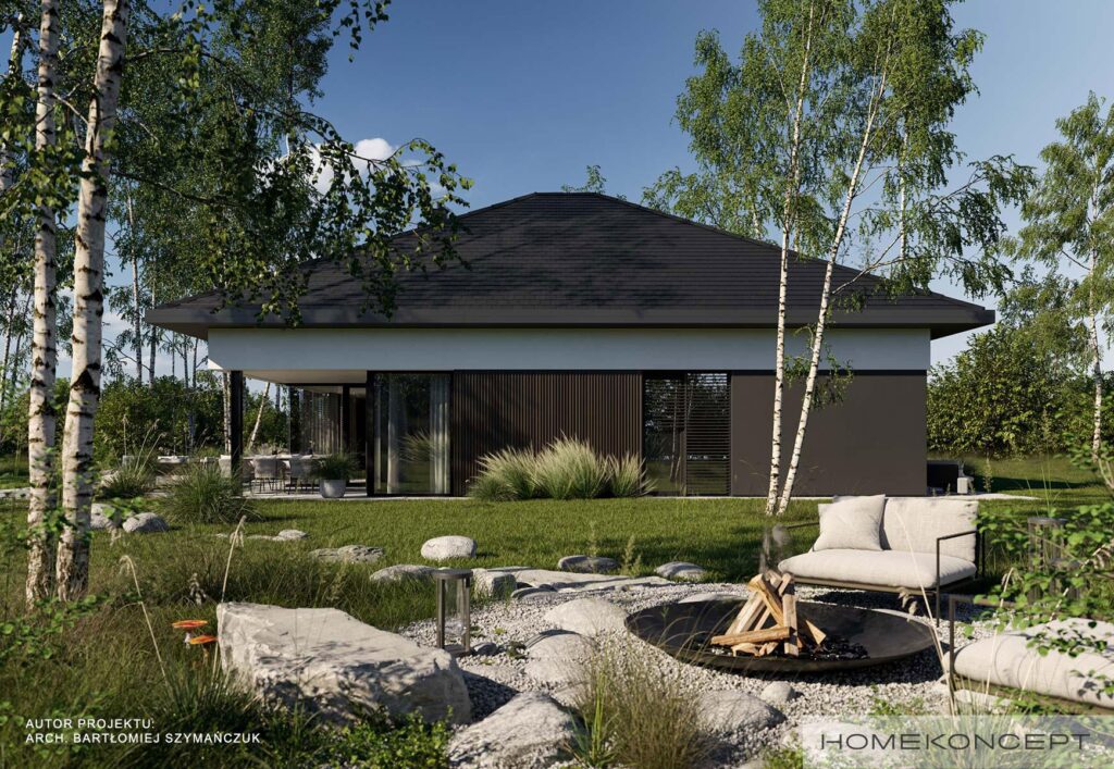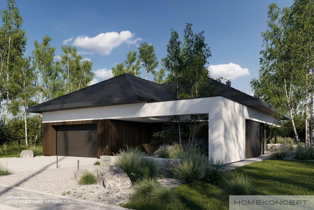 Wśród parterowych domów naszej pracowni jednym z projektów, który cieszy Waszym niesłabnącym zainteresowaniem jest HOMEKONCEPT 97. Do tej pory występował w wersji z 4 pokojami bez garażu oraz 3-pokojowej z dwustanowiskowym garażem. Wielu z Was pytało o wersję, która miałaby to wszystko – czyli 4 pokoje oraz miejsce na 2 auta w garażu. Dlatego też powstał HOMEKONCEPT 133 – dom o powierzchni 130 m2, w którym udało nam się połączyć to, co najlepsze w dotychczasowych odsłonach domu HOMEKONCEPT 97.